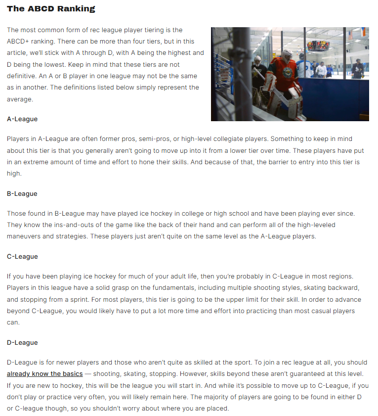 Wondering How Recreational Hockey Leagues are Tiered?